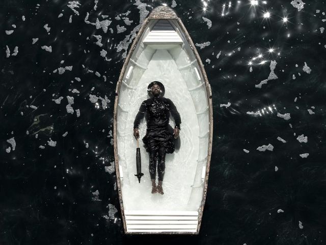 Pour son 50e anniversaire, le CAPC de Bordeaux a invité l’artiste franco-canadienne à occuper la grande nef. Son installation monumentale « Retenue » en cordage maritime fait référence à la Garonne et à l’indigo importé durant la traite négrière qui fit la fortune du Port de la Lune.