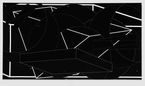 Dans le secteur Unlimited, Al Held est représenté par Black Nile VII, une toile monumentale de 1974 sur laquelle il combine des formes harmonieuses et complémentaires en noir et blanc.