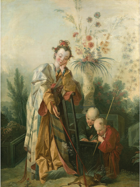 Les chinoiseries ont été diffusées en Europe au XVIIIe siècle dans une quête d’exotisme et dans le but de plaire aux commanditaires; parmi eux, Louis XV.