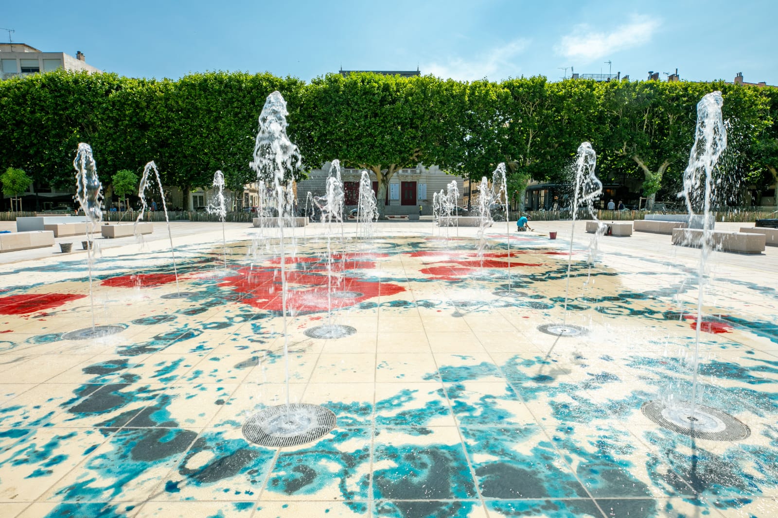 Dans le cadre du réaménagement de la place Victor Hugo à Sète, l’artiste a réalisé « La Fontaine des fleurs mouvantes », à l’entrée de la ville de l’Hérault.