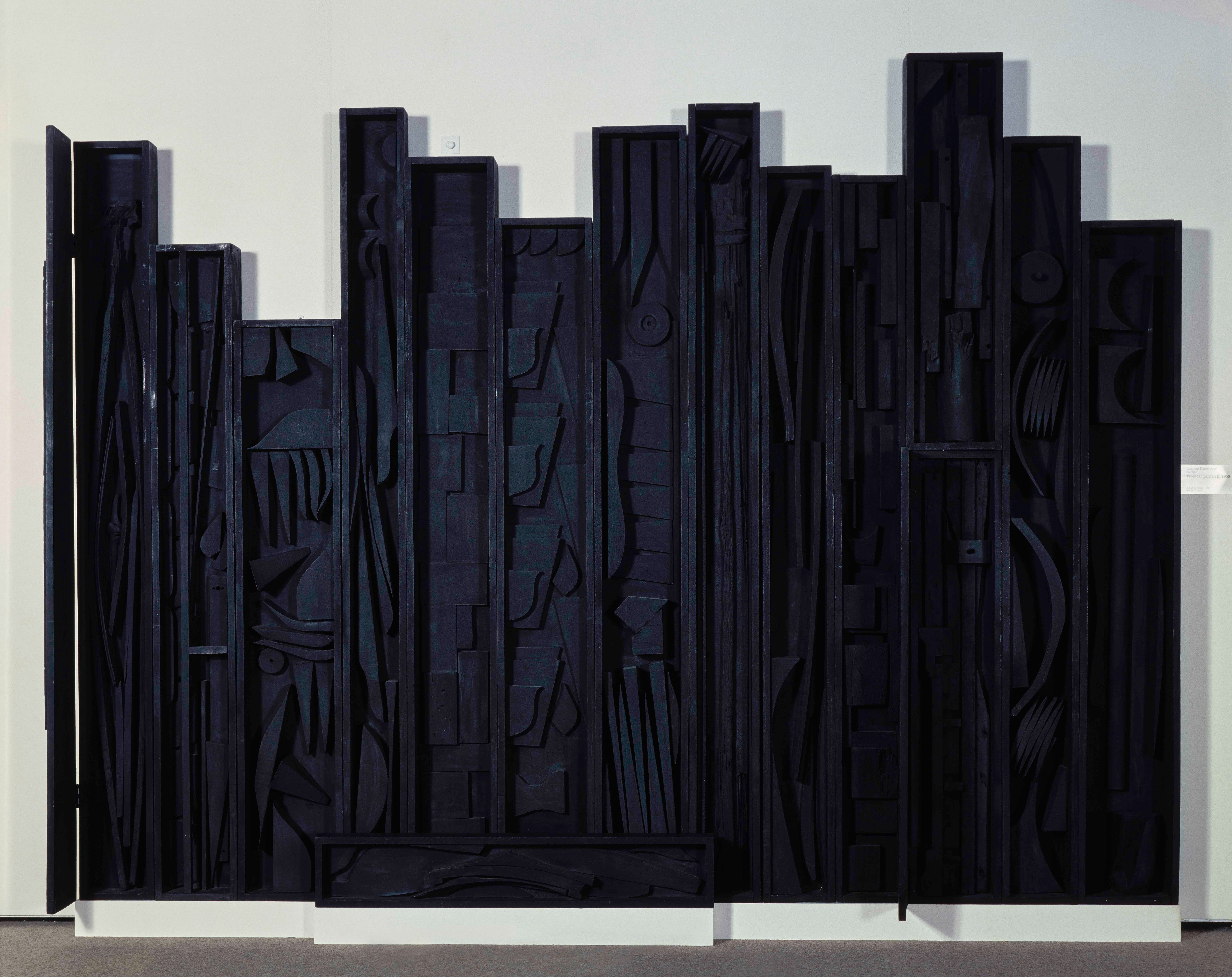 Louise Nevelson (1899-1988) puise autant dans le cubisme étudié auprès de Hans Hofmann que dans son expérience de peintre muraliste auprès de Diego Rivera pour réaliser ses assemblages monumentaux à partir de morceaux de bois trouvés, dont fait partie Tropical Garden II.