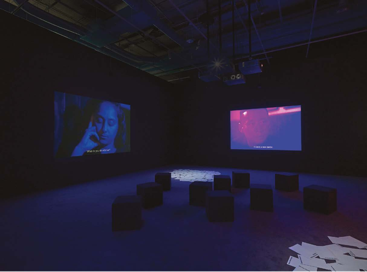 Chaque installation de l’artiste français Julien Creuzet est une œuvre d’art totale qui englobe le visiteur dans un univers hybride associant poésie, vidéo, son et sculpture.