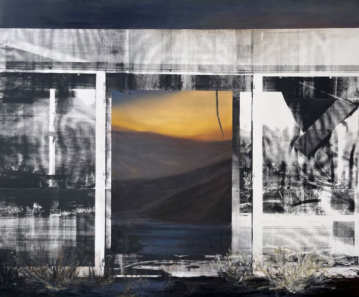 Les grands tableaux de l'artiste, dont certains produits spécialement pour l’occasion, explorent les tensions entre la main et la machine, mais surtout entre la nature et les espaces construits ou non.