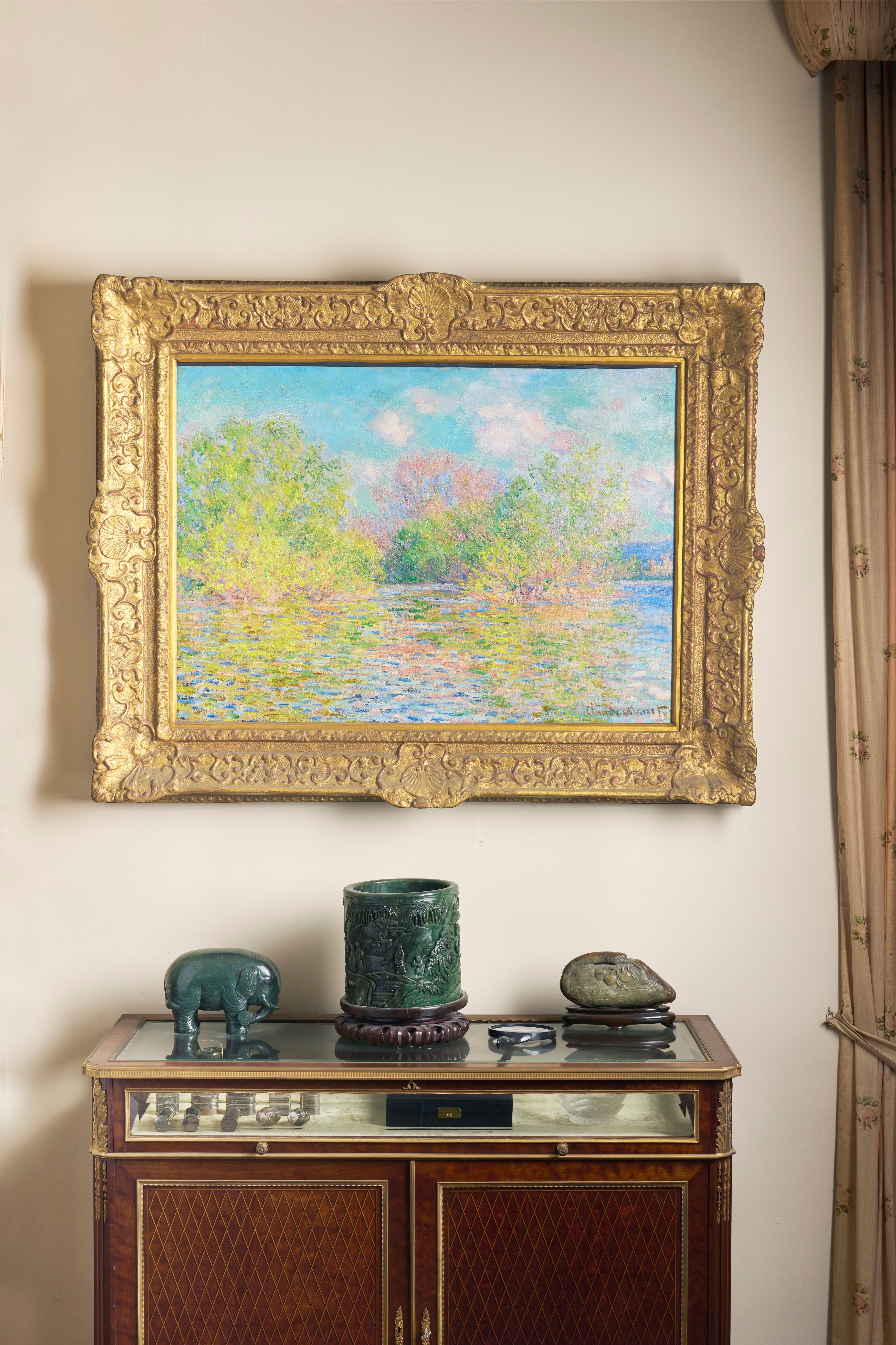 La toile présente une vue d’un moulin à grains sur la rivière Epte, près de la résidence habituelle de Claude Monet à Giverny (Eure).