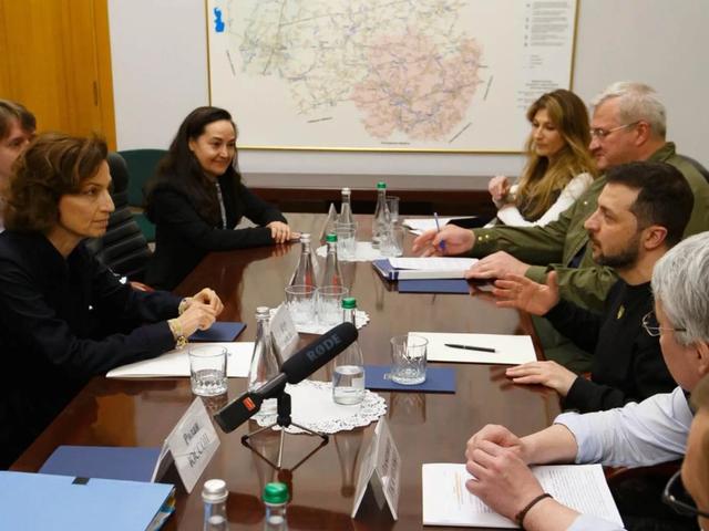 Audrey Azoulay, la directrice générale de l’Unesco, a rencontré le président ukrainien Volodymyr Zelensky et a visité des sites à Kiev, Tchernihiv et Odessa lors d’une visite officielle dans le pays les 3 et 4 avril 2023.