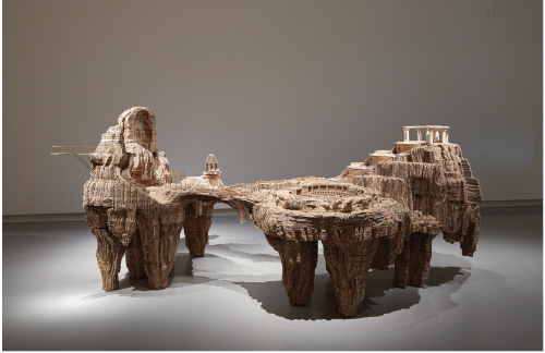 L’artiste française a reçu carte blanche pour « meubler » les différents espaces de l’hôtel de maître datant des années 1920 avec ses décors et ses architectures monumentales en carton découpé.