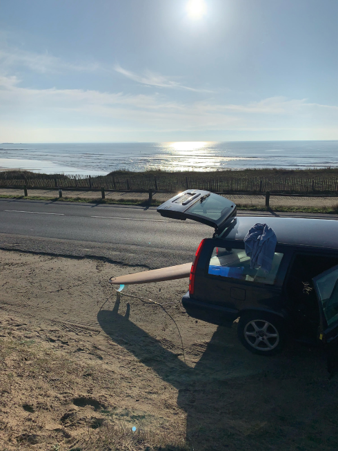Objet avant tout utilitaire, l’automobile du designer lui sert notamment pour aller surfer. Une passion qu’il pratique depuis longtemps et qui, comme le dessin, nécessite un temps irréductible.